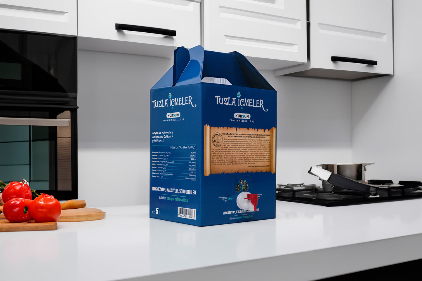 Her kutu, 9 katmanlı, hava almayan, gıda ile temasa uygun özel torba ve kilitli musluğu ile uzun süre bozulmadan kullanılabilir. Ürün ambalajında, Sağlık Bakanlığı tarafından onaylı içerik ve mineral miktarları açık şekilde yer almaktadır.